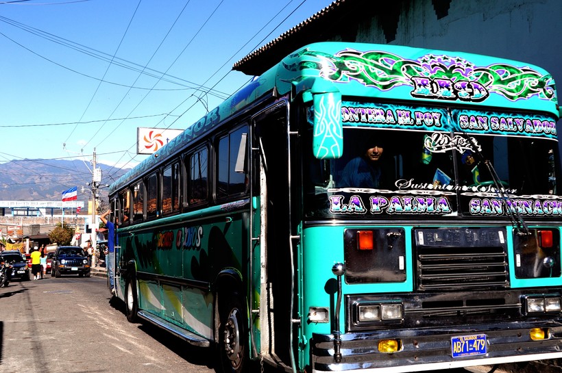 Местные автобусы не такие замечательные и комфортные, как международные, конечно, но тоже содержатся в весьма приличном состоянии. Как правило, это старые американские школьные автобусы. Такие, знаете, желтые или же зеленые, c рифленым кузовом. Очень узнаваемые. Здесь, в Латинской Америке, их принято расписывать и разрисовывать всеми цветами радуги. Водители повсеместно сигналят. Рядом нередко находится помощник, который громко выкрикивает название населенного пункта, куда транспорт следует; нередко название города дублируется и на лобовом стекле. Автобусы едут не очень быстро: сальвадорские дороги, несмотря на хорошее качество покрытия, довольно загруженные, что немудрено, учитывая плотность населения и застройки. Зато этот вариант перемещения очень дешев: в среднем от 0,5 до 0,7 USD за час пути.