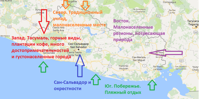 Сальвадор, точнее, Эль Сальвадор — не удивляйтесь, местные обязательно будут вас поправлять — это такая крошечная страна, что не всякий вспомнит, где она находится. Я как-то не задавалась этим вопросом, пока не услышала однажды песню веселого «разноцветного» антиглобалиста Ману Чао "Me gustas tu". На заднем плане там звучит приятный женский дикторский голос, объявляющий точное время в странах центральноамериканского перешейка. Это тогда я обратила внимание на то, что страна и ее столица называются практически одинаково. И почему-то сразу захотелось в этом загадочном месте побывать, что и совершилось спустя пару лет. Сальвадор, который еще называют краем озер и вулканов, можно за день несколько раз проехать вдоль и поперек. Но несмотря на то, что территория этого государства невелика, здесь можно провести интереснейший отпуск. Впрочем, обо всем по порядку...