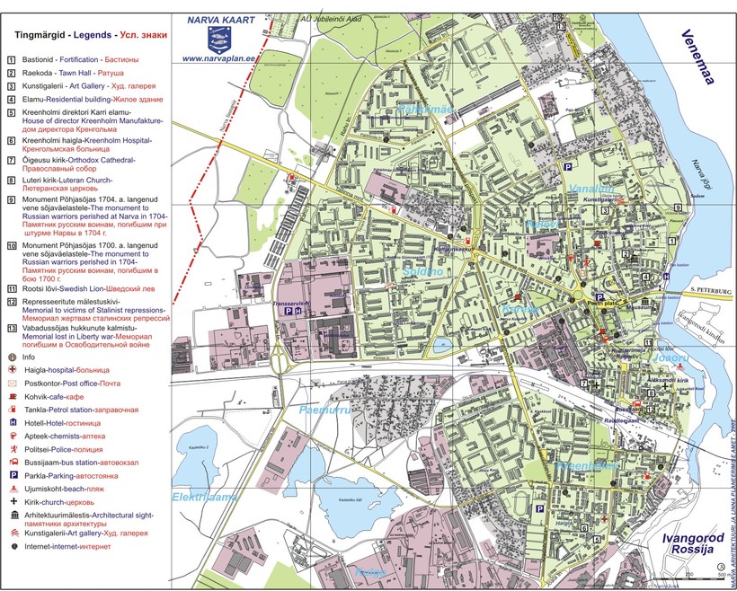 Единственное, что настоятельно рекомендую сделать, если вы приехали в город на автомобиле и собираетесь возвращаться через КПП «Нарва — Ивангород» — это заранее (хотя бы часов за 15) забронировать время прибытия на КПП. (Как это сделать, вы сможете найти в Интернете.) Дело в том, что из трех русско-эстонских КПП этот является самым загруженным, и я в свое время выехал из Эстонии на 12 часов позже, чем планировал, поскольку пренебрег возможностью предварительной брони.