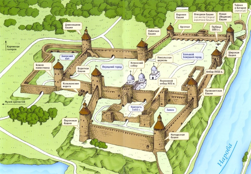 В конце XV века русский князь Иван III строит на противоположном берегу Наровы Ивангородскую крепость, которая также сохранилась до наших дней.