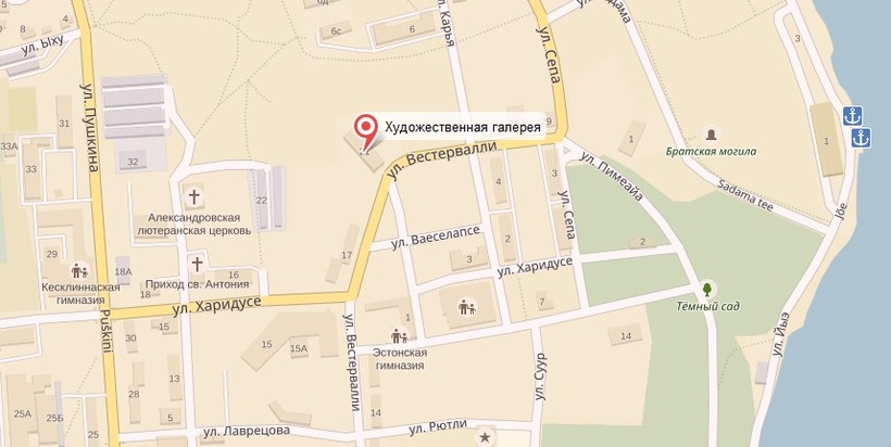 В стенах галереи произведения современных художников соседствуют с работами живописцев XIX века, при этом сами художники представляют как Эстонию, так и Россию, а самые известные из них — Иван Айвазовский, Иван Шишкин и Карл Вениг. Помимо картин там выставлены и скульптуры, среди которых мне особенно запомнился «Галерейный дух» работы современного мастера Альберта Белякова. Внешне она напоминает языческого деревянного идола с кистью и палитрой в руках.