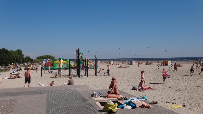 Центральный пярнуский пляж уже был упомянут мною выше, как одна из главных достопримечательностей. В городской черте он является единственным и неповторимым. Протяжённость песчаной полосы — около 3-ёх километров (места должно хватить всем). С запада пляж начинается от мола на реке Пярну, заканчивается на востоке так называемой «туристической тропой в прибрежных лугах». Пляж имеет развитую инфраструктуру — раздевалки, туалеты, киоски с перекусами, пункты проката инвентаря. Выделена отдельная зона под «женский пляж», для любительниц позагорать голышом. Из центра города (от автобусного вокзала) до пляжа ходят три автобусных маршрута (№№ 15,16,17), но тратить 0,70 EUR (~50 RUB) на билет совершенно ни к чему, можно мило прогуляться пешком около 2 км.