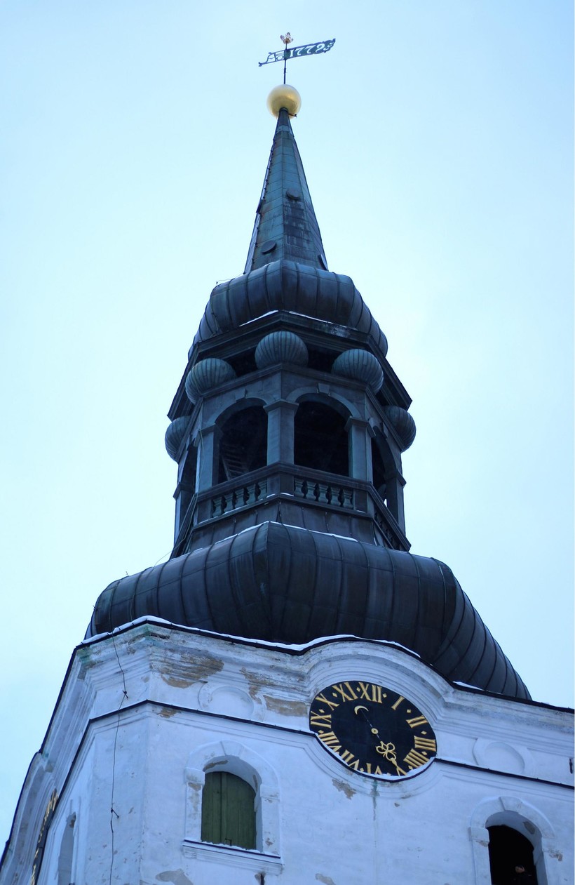 Правда, для людей мало ознакомленных с символикой Евангелия, порой кажется, что на шпиле расположена корона. Я думаю, что в силу того и бытует легенда, что это сделано специально в благодарность нашей русской императрице Екатерине II, пожертвовавшей немалую часть финансовых средства для строительства башни. Для меня интересным стал факт, что она является самой молоденькой колокольней старейшей таллинской церкви. Вот такой парадоксальный архитектурный симбиоз этого собора на холме Тоомпеа.