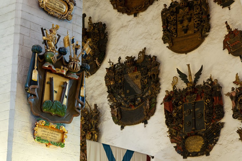 Есть у Домского собора, как у любого таинственного здания, родом из средневековья и легенда. На полу при входе в церковь можно увидеть странную надгробную плиту с надписью, которая гласит: «Могила Отто Иоханн Туве помещика Эдизе, Вяена и Коону. Год 1696». Этот эстонский дворянин, чья фамилия в переводе означает «Голубь», был вовсе не смиренным голубком, а настоящим повесой и гулякой. Недаром при жизни его прозвали таллинским Дон Жуаном. Но перед смертью, видимо, и ему было не чуждо переосмыслить своё поведение и покаяться в грехах. И покаяние его было так искренне, что завещал он похоронить себя прямо на входе в Домский собор, чтобы все прихожане попирали его могильную плиту ногами, ну, а сердобольные христиане, чтобы вспоминали его словом молитвы перед девой Марией. Так или иначе, но я нашла информацию, что на севере Эстонии действительно проживал дворянский род Туве, чей герб находится на колокольне церкви, построенной этим семейством в Йыхви.