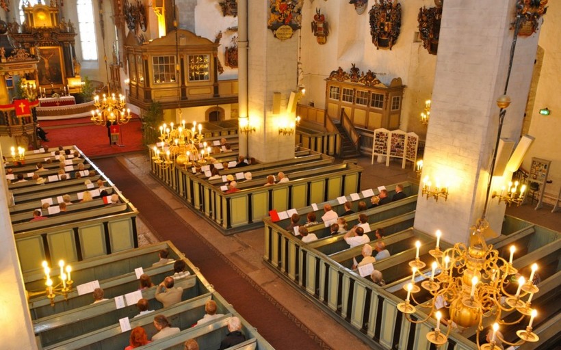 Он расположился на Вышгороде (Тоомпеа) недалеко от православного кафедрального собора им. Св. Александра Невского. Оба этих величественных здания красноречиво повествуют нам о том, что в Таллине доминируют христианские церковные конфессии. Кстати, именно Toomkirik и дала название этому холму, ведь Тоомпеа в переводе с эстонского языка и означает «Соборный холм». В наше время Домский собор – главное здание Евангелическо-Лютеранской церкви Эстонии и резиденция епископа. В ряду его главных ценностей – собрание гербовых эпитафий, искусно вырезанных из дерева, епископская кафедра, масса каменных надгробий, алтарь и орган.