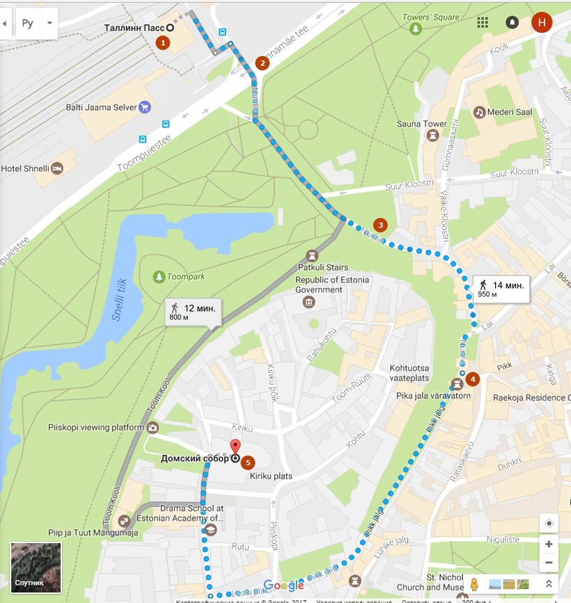 Чтобы добраться до Домского собора от железнодорожного вокзала (1), откуда Старый город виден непосредственно, вам стоит лишь перейти дорогу (2) и подняться по улице Nunne (3) до Pika jala väravatorn (4).