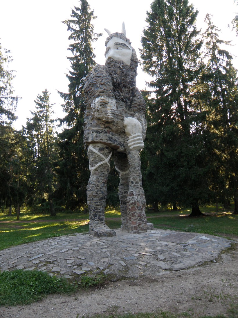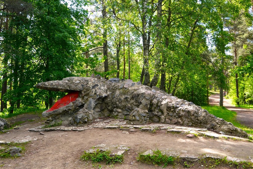 Если дракон, который в данном случае больше напоминает крокодила, – это образ, характерный для культуры очень многих народов, то Калевипоэг – персонаж из эстонского дохристианского эпоса. Примечательно, что в исполнении Николая фон Глена древнеэстонский богатырь выглядит не совсем человеком, хотя на многих изображениях Калевипоэг отличается от нас с вами только недюжинным ростом. Кстати, та скульптура, которую мы можем видеть сейчас – это реплика, а обломки оригинала, разрушенного во время Первой мировой войны, валяются совсем рядом.