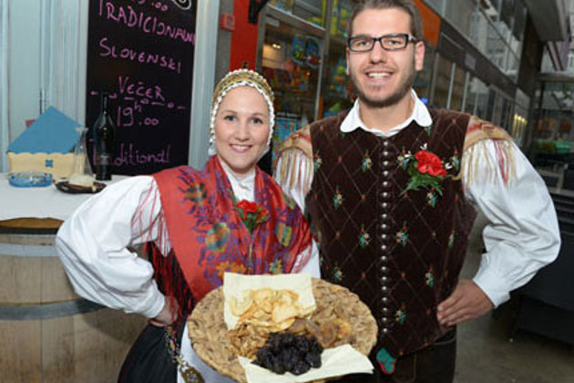 Незабываемое музыкально-танцевальное шоу, которое вдохновит словенской живой музыкой, пением, танцами, отличной едой и хорошим бокалом вина. ПРОГРАММА ВКЛЮЧАЕТ: На входе гостей встречают пары в национальных костюмах с традиционным приветствием с аккордионом и со «шклойцами» (сухофруктами). Чтобы создать приятную обстановку, музыканты вживую играют словенскую музыку. Фольклорная группа в национальных костюмах представит танцы различных регионов Словении. Опытные танцоры привлекут к происходящему гостей, которые смогут проявить себя в традиционных играх: «поуштернац»,одинокий стул, шитьё, танец со шляпами, змея и т. д. В завершении вечера фольклорная группа подарит гостям небольшие подарки. Словенский ужин Мясное меню: копченая колбаса и сало, домашний хлеб, домашний овощной суп, свинина по-крестьянски или куриное филе по-крестьянски, печёная картошка a La Chef&гречневая каша, смешанный салат, десерт Вегитарианское меню: сырная нарезка, домашний хлеб, домашний овощной суп, гречневая каша с грибным соусом, смешанный салат, десерт Цена 39 € / человекаЦена включает: приветственный напиток, ужин, анимация, шоу и организация Цена не включает: дополнительные напитки и русскоговорящего сопровождающего Где: в центре города Любляна Предостоящие вечера: 3.11.2014 5.11.2014 8.11.2014 10.11.2014 12.11.2014 14.11.2014 19.11.2014 22.11.2014 26.11.2014 Словенский вечер получил серебряную премию за инновации и творчество (2007) и премии за лучший реализации перспективных идей (2009) от. Slovenian Tourist Board.