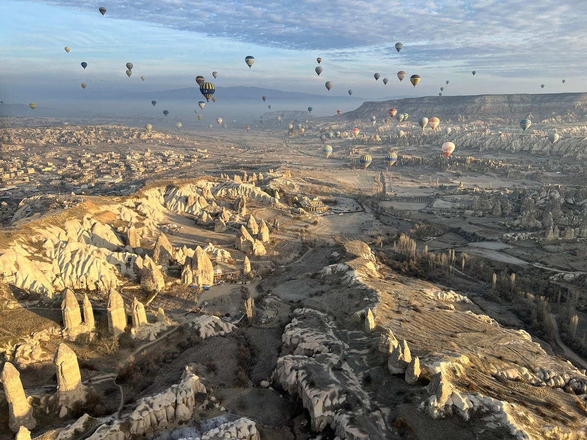 Курс, которому следуют шары, зависит от ветра, но вы точно увидите самые красивые панорамы. Вас впечатлят высокие столбы Долины любви, каменные «грибы», возвышающийся город-крепость Учхисар и скальные монастыри Гёреме. Наши пилоты подскажут названия мест, над которыми вы пролетите, а ещё они любят пошутить :)