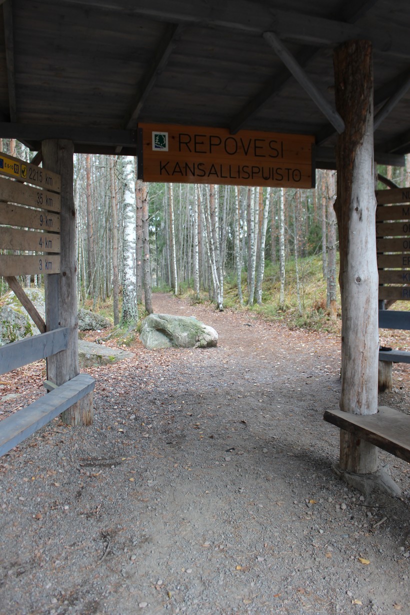 Отдельно хотелось бы сказать, что в Реповеси есть несколько смотровых площадок. Когда я писала о "Лисьей тропе, уже упоминала смотровую на вершине скалы после подъема по лестнице Катаявуори (Katajavuori). Остальные находятся на маршруте "Кааккуринкиеррос" или "Краснозобая гагара".