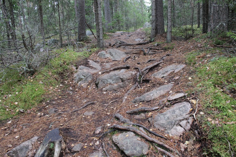 Все маршруты в парке облагорожены. Там, где тропинка кажется труднопроходимой, постелена дощатая тропа. Проходя по маршруту, стоит рассматривать не только спину впереди идущего. Поднимите голову вверх: высота сосен впечатляет, а небо в Финляндии просто изумительное и всегда разное. Картина под ногами напоминает эльфийский лес. По сторонам можно увидеть будто художественно поваленные деревья. Также в зависимости от сезона можно найти ягоды, которые здесь собирать можно и нужно. Одно но: чтобы избежать последствий, собирайте и пробуйте на вкус только то, что точно знаете.