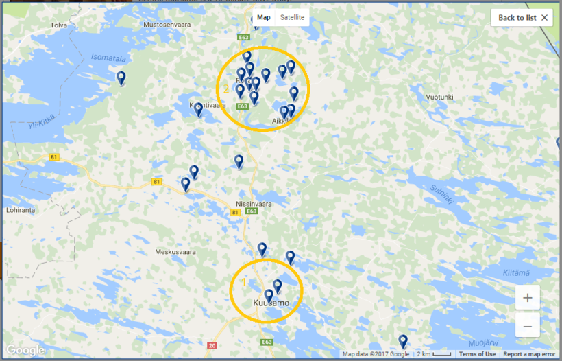 В районе Куусамо можно выделить две зоны, где есть хорошие места проживания.
