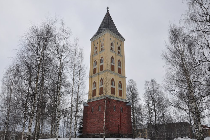 Колокольня очень заметна, она построена в 1856 году Э. Б. Лорманом (Ernst B. Lohrmann). - Памятник битве 1741 года или Памятник бревну