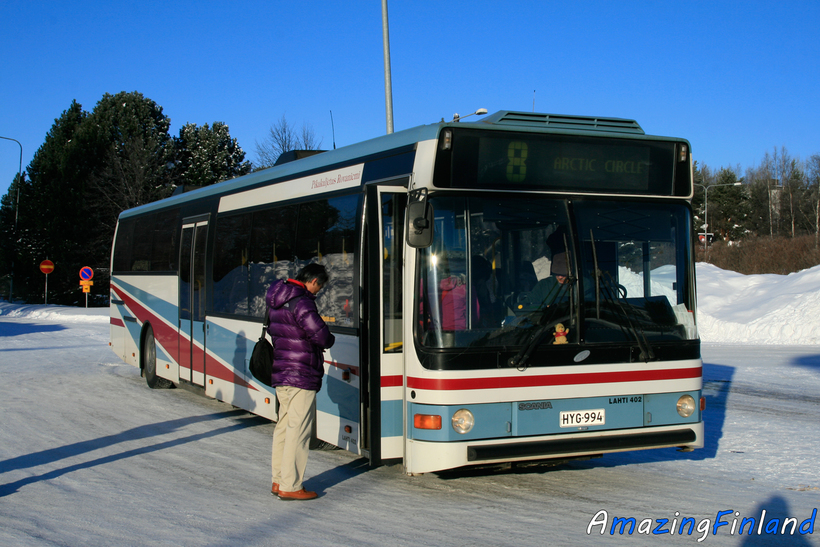 Компании “Gold Line” и “Oy Matkahuolto Ab” предоставляют ежедневные ночные рейсы в Рованиеми из Хельсинки через аэропорт Хельсинки-Вантаа. Поездка на автобусе с юга Финляндии относительно дешевая, но придется преодолеть 14-часовой путь сидя.