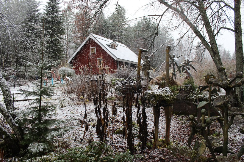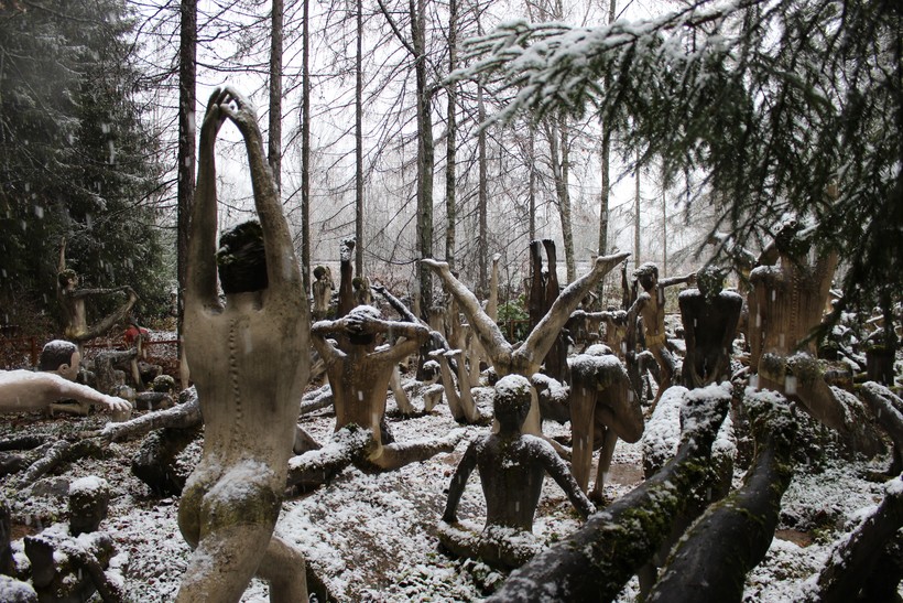 На нас оно произвело просто неизгладимое впечатление. Заброшенный домик, окруженный огромным количеством скульптур в странных позах. Как выяснилось потом, мы зашли с заднего входа, то есть все фигуры были обращены в противоположную сторону. Поначалу в парке было забавно. Мы прогуливались, фотографировали скульптуры, дурачились. Снег падал огромными красивыми хлопьями. В какой-то момент, мы стали замечать, что вокруг очень тихо. В принципе складывалось впечатление, что хозяин – тот самый сумасшедший художник – либо только что отошел, либо наблюдает за нами из-за угла. Мы притихли...