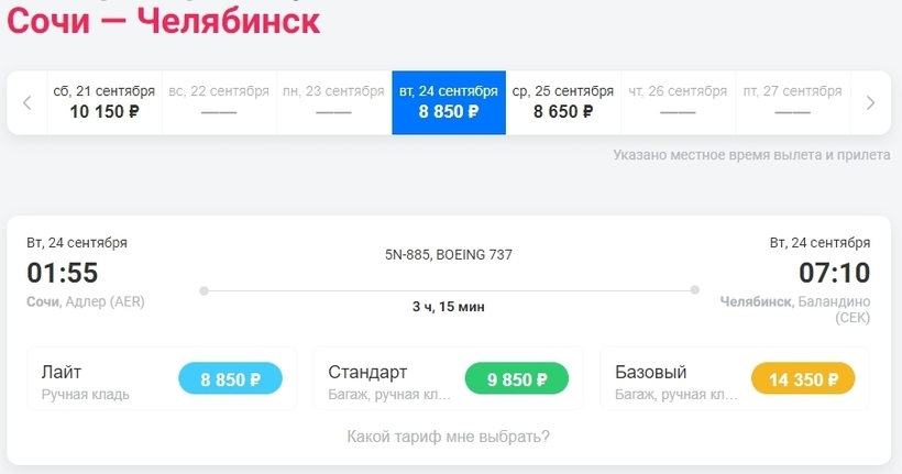 Pegas Fly (EO 507) Boeing 737-900 | 11:20 Сочи (AER) | 3 ч. 30 мин | 16:50 Челябинск (CEK) | 17 октября |