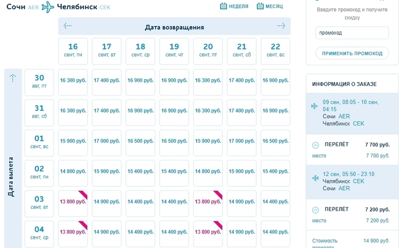 Билеты «туда-обратно» в ноябре обойдутся вам всего в 10 008 рублей, а в сентябре придется заплатить за них не менее 116 682 рубля. В среднем же, долететь до Челябинска и вернуться в Сочи можно за 36 018 рублей.