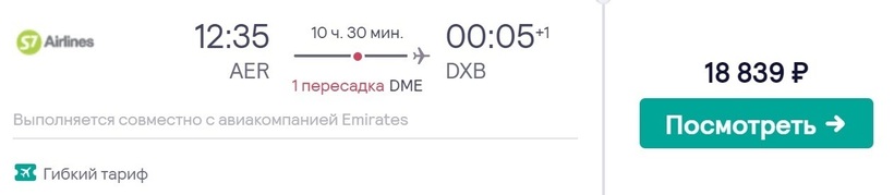 Менее популярный вариант — перелет с S7 и Emirates. Причина — стоимость билетов (от 18800 рублей за 1,5 месяца).
