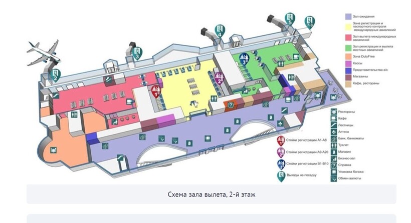 Обращаю ваше внимание, что зона Duty Free в пассажирском терминале воздушной гавани находится на втором этаже в левом крыле.