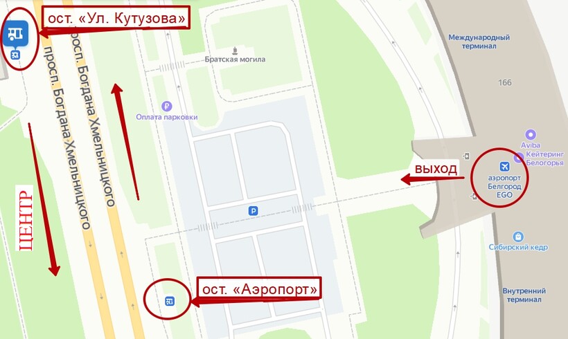 Курсирует транспорт примерно с 05:30 до 24:00 каждые 8–20 минут. Поездка в среднем занимает 25–30 минут, билет стоит 25 рублей. Отмечу, что добраться до ж/д вокзала (автовокзал в пешей доступности от авиаузла) можно на троллейбусах № 1, 4 и автобусах № 25, 28, 112, 130а, 213. Такси до центра Белгорода доставит за 15 минут и обойдется в 200–400 руб.
