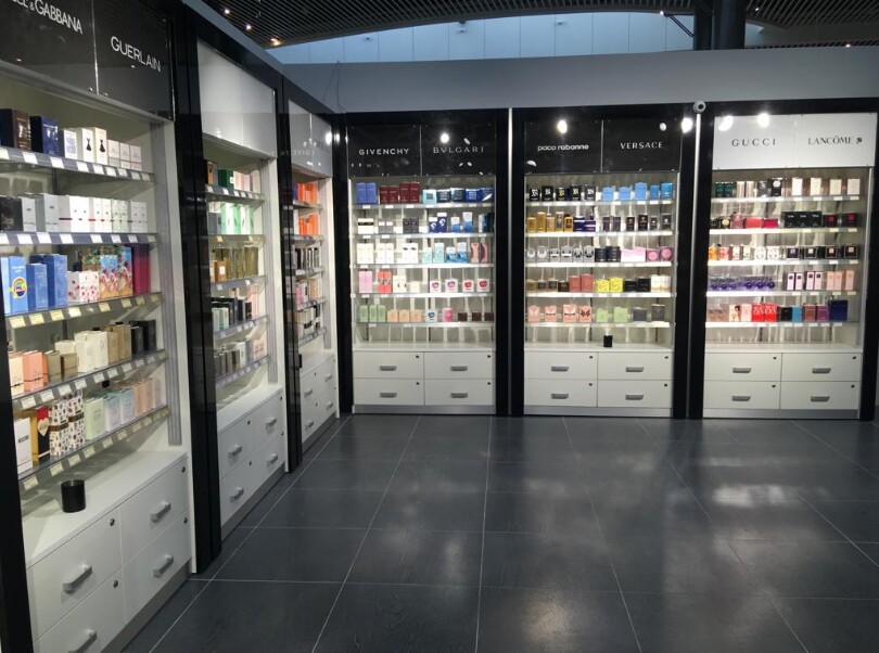 На втором этаже зала вылета международных рейсов, в чистой зоне, можно посетить магазин беспошлинной торговли. В магазине представлены эксклюзивные товары от компании Gebr. Heinemann и др.