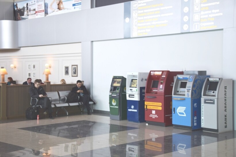 Банкоматы. На территории аэровокзала можно воспользоваться банкоматами банка Авангард, Газпромбанка, Московского Индустриального Банка, Россельхозбанка, ВТБ.