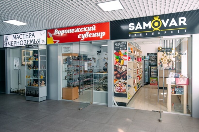 Магазины. В терминале есть несколько торговых точек, в которых можно купить товары для путешествия, сувениры, подарки. Магазины расположены на втором этаже в правом крыле здания. Рядом с лестницей (на первом этаже в правом крыле) находится магазин по продаже рыбной продукции — «Астраханские деликатесы». На первом этаже есть специальный аппарат, в котором можно купить цветы.