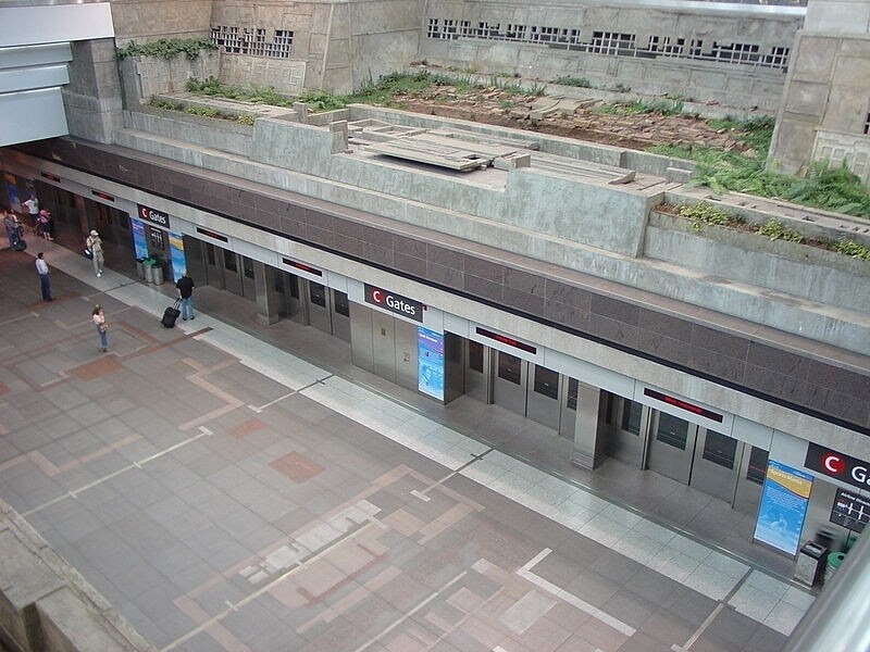 Главный терминал соединен с конкорсом А пешеходным мостом. Попасть в конкорсы В и С можно только на поездах AGTS, которые отправляются с 4-го уровня Jeppesen Terminal и останавливаются в каждом из конкорсов (остановки в конкорсах находятся на уровнях B). Поезда курсируют с интервалом примерно в 2–3 минуты, поездка от главного терминала до конкорса С занимает 11 минут.