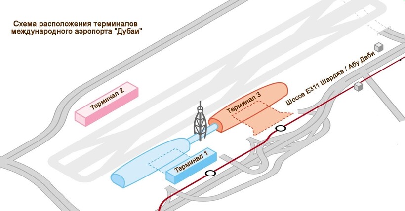 Метро. Возле терминалов 1 и 2 расположены станции метро красной линии — Airport Terminal 1 и Airport Terminal 3. За 40–50 минут можно добраться до центра города. Проезд оплачивается бесконтактной картой, советую купить NOL Red за 8,5 дирхама (180 ₽). От терминала 2 до ближайшей станции метро — 2 км.