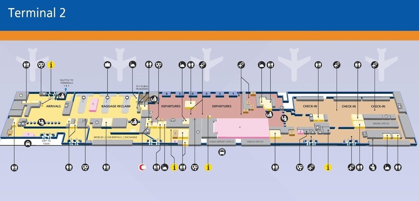 Терминал 2 ориентирован на чартерные и лоукост-компании, а также на рейсы между странами Ближнего Востока.