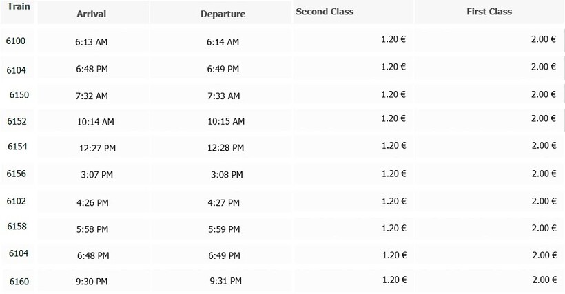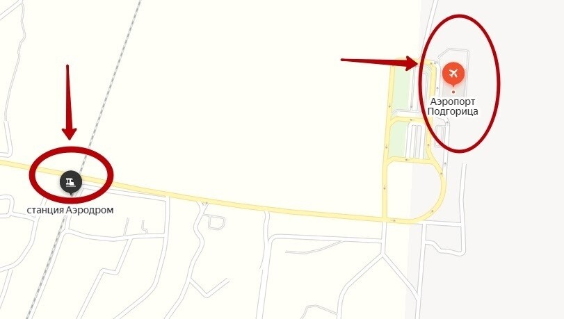 Железнодорожная станция Аэродром расположена примерно в 1 км от аэропорта (хочу обратить внимание, что дорога до станции плохая). Поезд отсюда отправляется не более 10 раз в день: курсирует с 06:14 до 21:30 с интервалом в среднем в 1–2 часа. Доехать до Подгорицы можно всего за 7 минут. В зависимости от класса вагона билет стоит 1,2–2 € (110–180 рублей).
