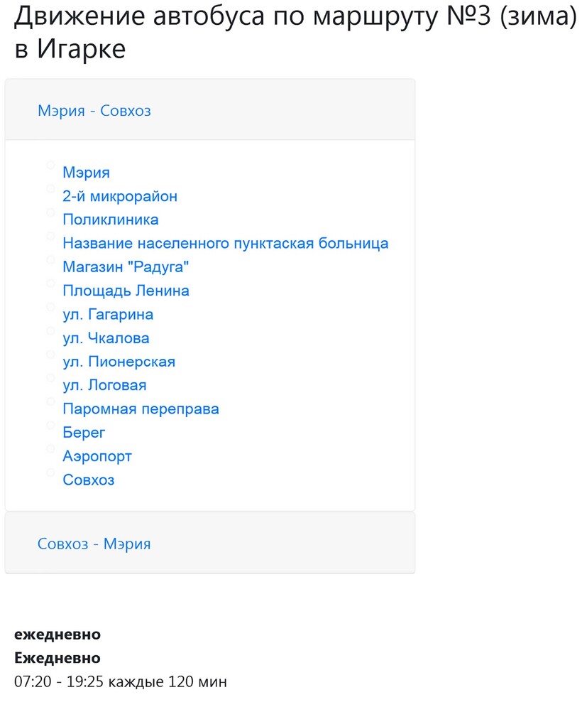 Автобус. Зимой (во время действия ледовой переправы) до города можно доехать за полчаса на автобусе № 3. Он курсирует от аэропорта до мэрии города (каждые 2 часа). Первый автобус отправляется в 07:20, последний — в 19:25. Проезд стоит 26 ₽.
