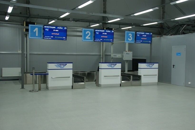 Начну с того, что воздушный порт Калуга имени К. Э. Циолковского представлен двумя пассажирскими терминалами. Первый (А) обслуживает внутренние рейсы и состоит из двух этажей, второй (В) — международные (здание одноэтажное).