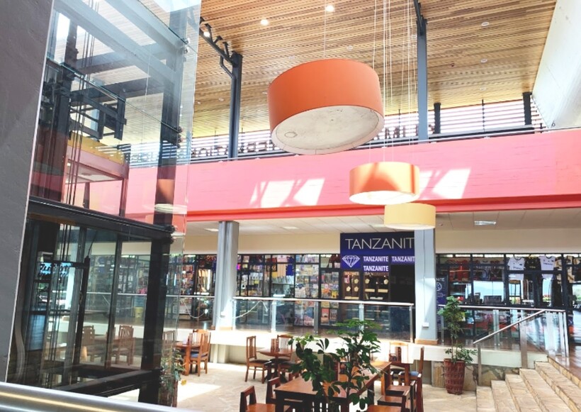 Магазины. В стерильной зоне (возле зала ожидания) на 2-м этаже имеются киоски с сувенирами, изделиями ручной работы, этноукрашениями. Также там найдете магазин, реализующий ювелирные украшения, в том числе с танзанитами. Также имеется небольшой книжный магазин.
