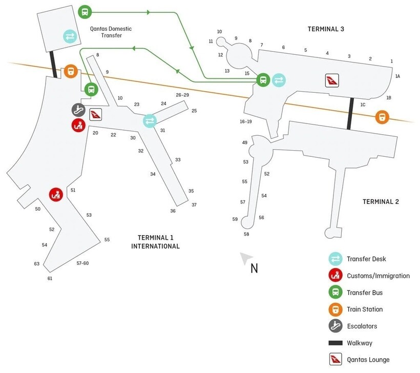 трансфером (T-Bus) компаний Qantas и Virgin Australia;