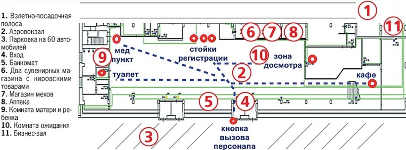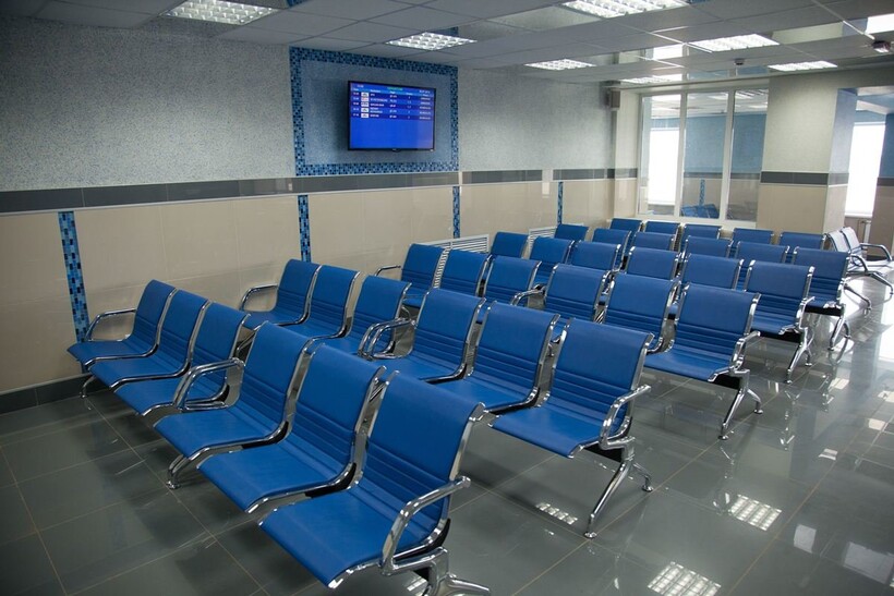 Бизнес-зал расположен в правом крыле терминала. Комната матери и ребенка — в левом крыле терминала аэропорта.