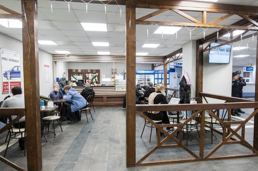 Еда. В зале ожидания на первом этаже есть два вендинговых аппарата, где вы можете купить безалкогольные напитки, снеки. Кафе-буфет также найдете на первом этаже терминала (возле зала ожидания).