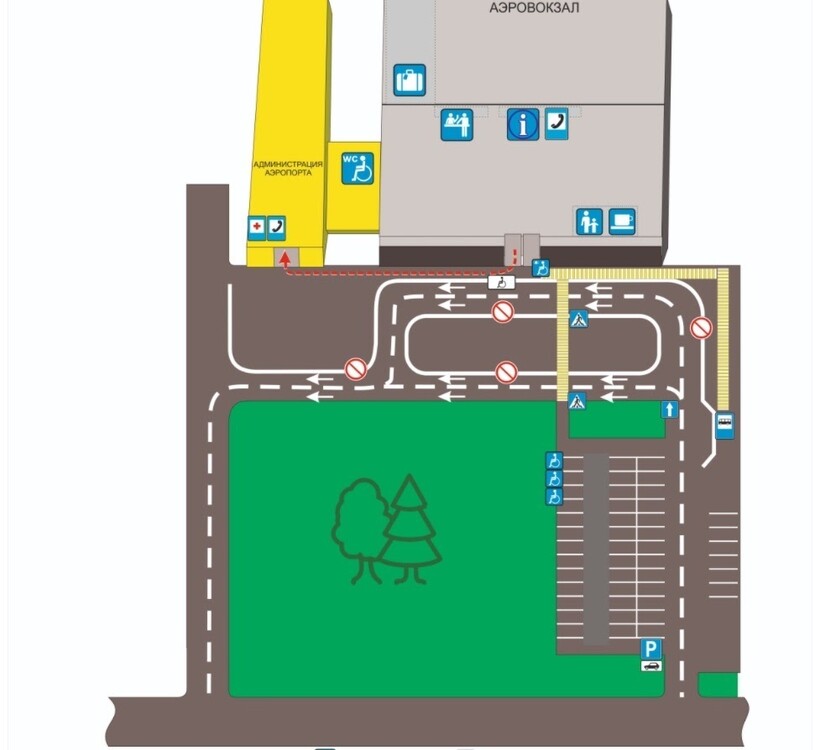 Представлен аэропорт одним двухэтажным авиатерминалом с интуитивно понятной навигацией внутри.