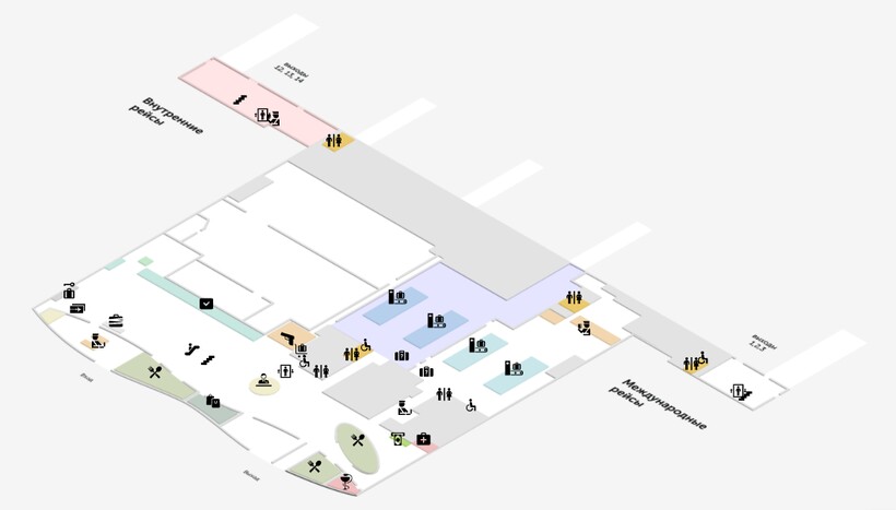 терминал 2 — в дни пикового пассажиропотока открывается для разгрузки основного терминала, в остальное время закрыт.