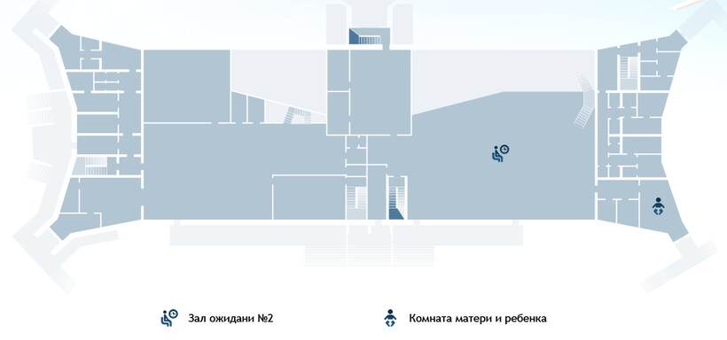 Комнату матери и ребенка найдете на втором этаже авиаузла (в правом крыле).