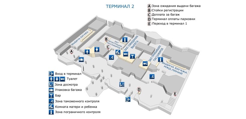 одноэтажный терминал № 2 предназначен для международных маршрутов.