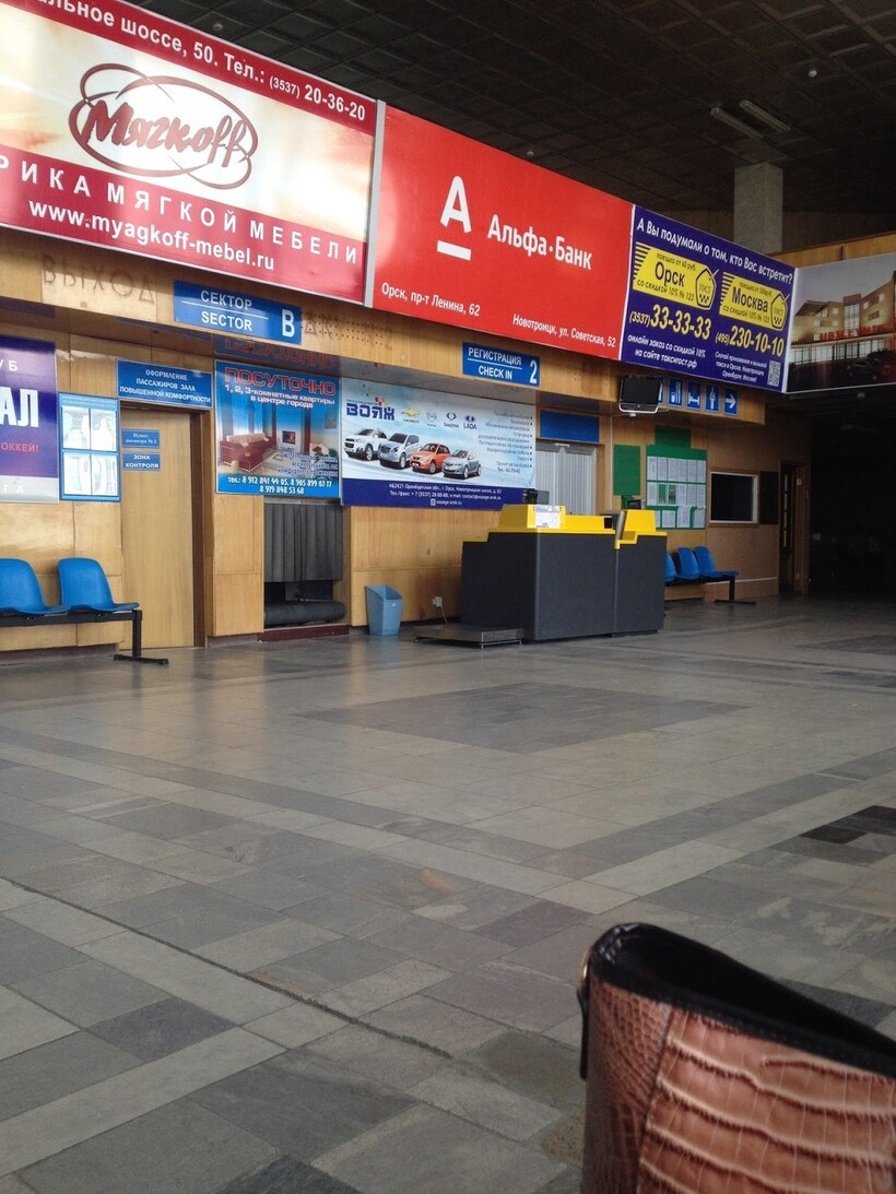 Начну с того, что международный аэропорт и центральную часть города Орск разделяет приличное расстояние — 17 километров. Авиаузел небольшой. Пассажиры регулярных и чартерных авиарейсов обслуживаются в одном двухэтажном терминале аэропорта.