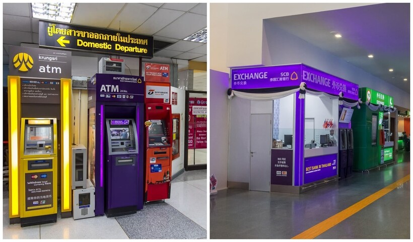 В здании аэровокзала расположены обменные пункты TMB, Siam Commercial Bank. Поменять деньги можно только в дневное время. Если рейс ночной, придется снимать в банкомате. Меняйте небольшие суммы (курс невыгодный). Обменные пункты есть на 1 этаже у входа и на 2 втором (около 17 и 18 стоек регистрации).