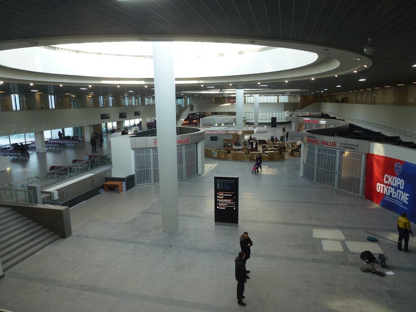 На данный момент, в аэропорту Санкт-Петербурга действует один большой терминал, который имеет 4 этажа. Он обслуживает пассажиров как внутренних, так и международных рейсов. Передвигаться внутри терминала нужно исключительно пешком.