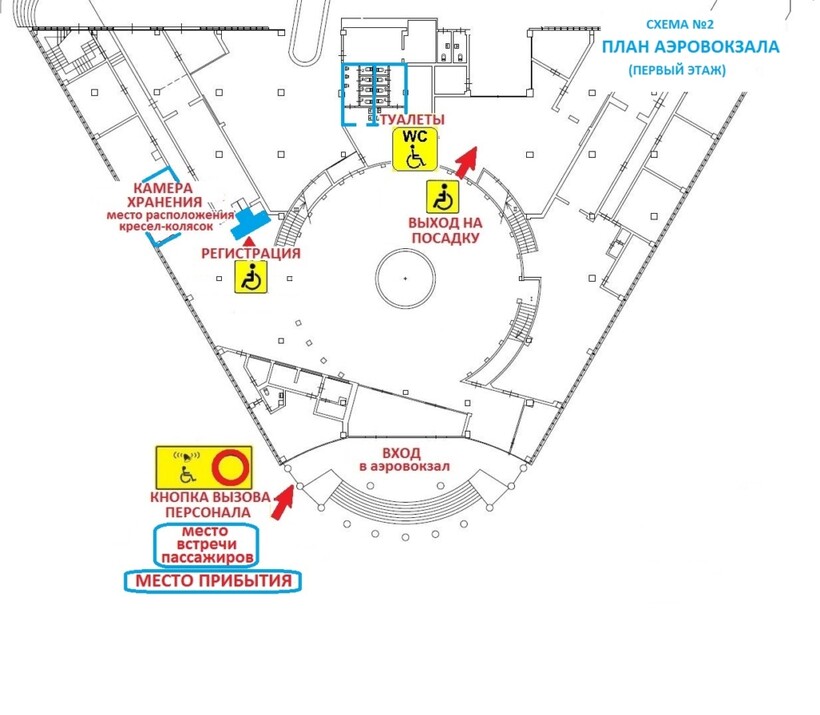 Зона регистрации расположена на первом этаже слева от входа в терминал, возле камер хранения. Чтобы дойти до стоек регистрации, зайдя в терминал нужно идти прямо к фонтану, затем свернуть налево.