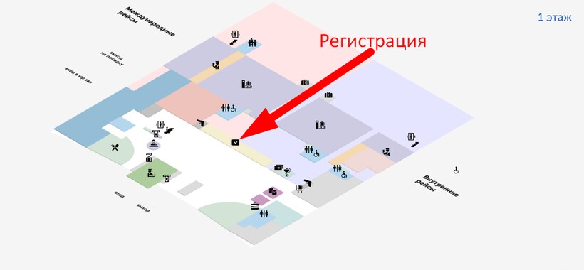 Стойки регистрации размещены на первом этаже напротив выхода из терминала. Также здесь есть киоски самостоятельной регистрации.