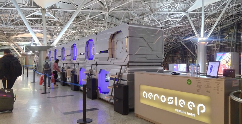 на третьем этаже терминала А есть капсулы для сна.