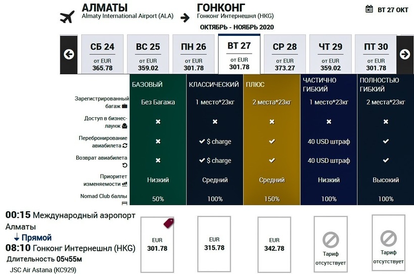Air Astana (KC 929) Boeing 767 | 00:15 Алматы (ALA) | 5 ч. 55 мин | 08:10 Гонконг (HKG) | пн, вт, пт с 26.10 по 23.03 |