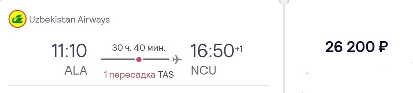 Узбекистон Хаво Йуллари (HY 9768) Airbus A320 | 13:15 Алматы (ALA) | 2 ч. 30 мин | 15:45 Нукус (NCU) | 29 сентября, 6, 13, 20, 29 октября, 1, 5, 8, 12, 15, 19, 22, 26, 29 ноября, 3, 6, 10, 13, 17, 20 декабря, … |