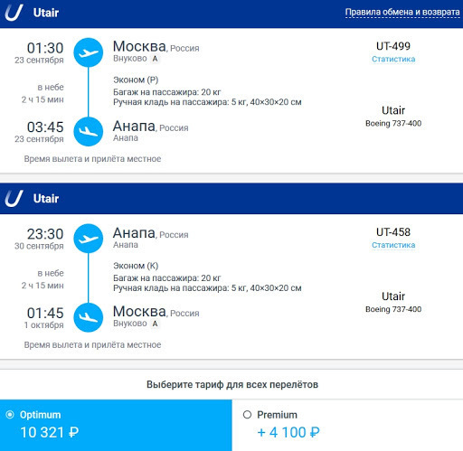 Рейсы других авиакомпаний имеют примерно те же условия, но более высокие цены: